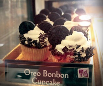 VIEW HIDDEN MICKEYThere are several Hidden Mickeys on this display of cupcake sold at the Boardwalk Bakery near Disney's Boardwalk Resort.