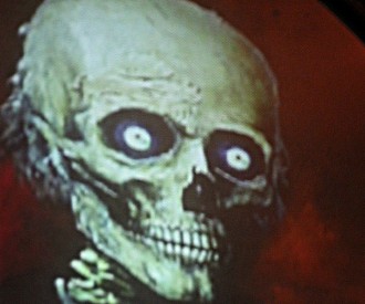 There is a Hidden Jack Skeleton in the entrance of Disney's The Haunted Mansion.  It happens very quickly when the photo over the fireplace...