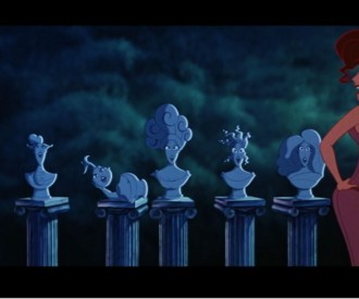 VIEW HIDDEN MICKEYIn this scene from Hercules when Meg is singing that she loves Hercules, the backup goddess singers are in the formation of the Haunted Mansion...