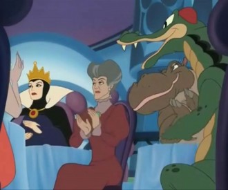 VIEW HIDDEN MICKEYThere is a Hidden Mickey that can be seen in this scene from Disney's Halloween Special "Mickey's House of Villains".