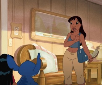 VIEW HIDDEN MICKEYThere is a Hidden Mickey in this scene Stitch The Movie when Lilo's sister runs into the house to check on Lilo.