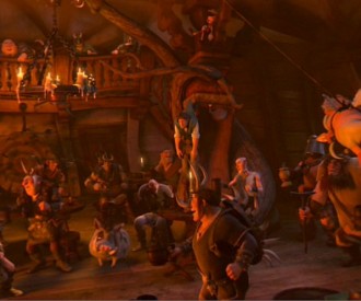 VIEW HIDDEN MICKEYThere is a Hidden Pinocchio in this scene of Tangled where the bar patrons are singing I've Got a Dream.