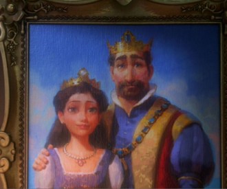 VIEW HIDDEN MICKEYThere is a Hidden Mickey in this scene of Tangled when they show Rapunzel's mother, the Queen, and her father, the King.