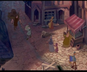 VIEW HIDDEN MICKEYThere is a Hidden Belle, from Beauty and the Beast, in this scene from The Hunchback of Notre Dame located toward the beginning of the movie.