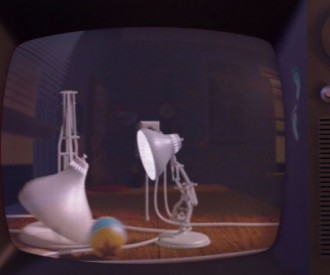 VIEW HIDDEN MICKEYThere is a Hidden Pixar Lamp in this scene of Toy Story 2 when Hamm the Piggy Bank is switching channels on the tv to see Al's Toy Barn commercial.
