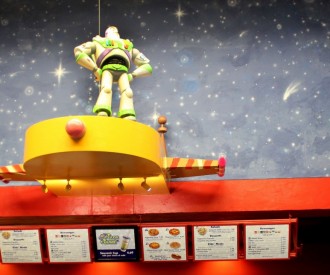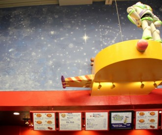 VIEW HIDDEN MICKEYThere is a Hidden Mickey in this picture taken inside of Pizza Planet near the Muppets 3D Movie in Disney's Hollywood Studios.