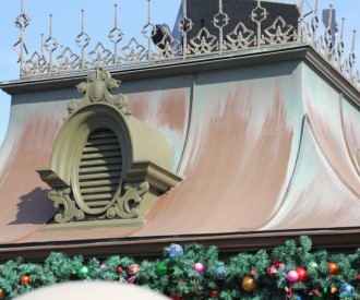 There are Hidden Mickeys located on the roof of awnings in front of the Cinderella Castle in The Magic Kingdom.