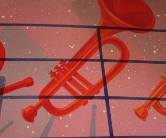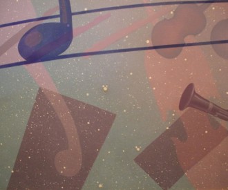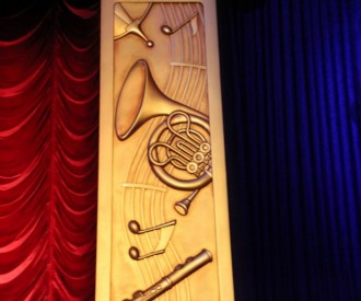 There is a Hidden Mickey in this pic taken at the entrance waiting area of Mickey's PhilharMagic in the Magic Kingdom.